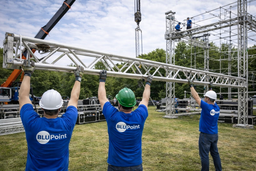 From simple platforms to complex builds, staging and structures are planned to perform from load-in through load-out.