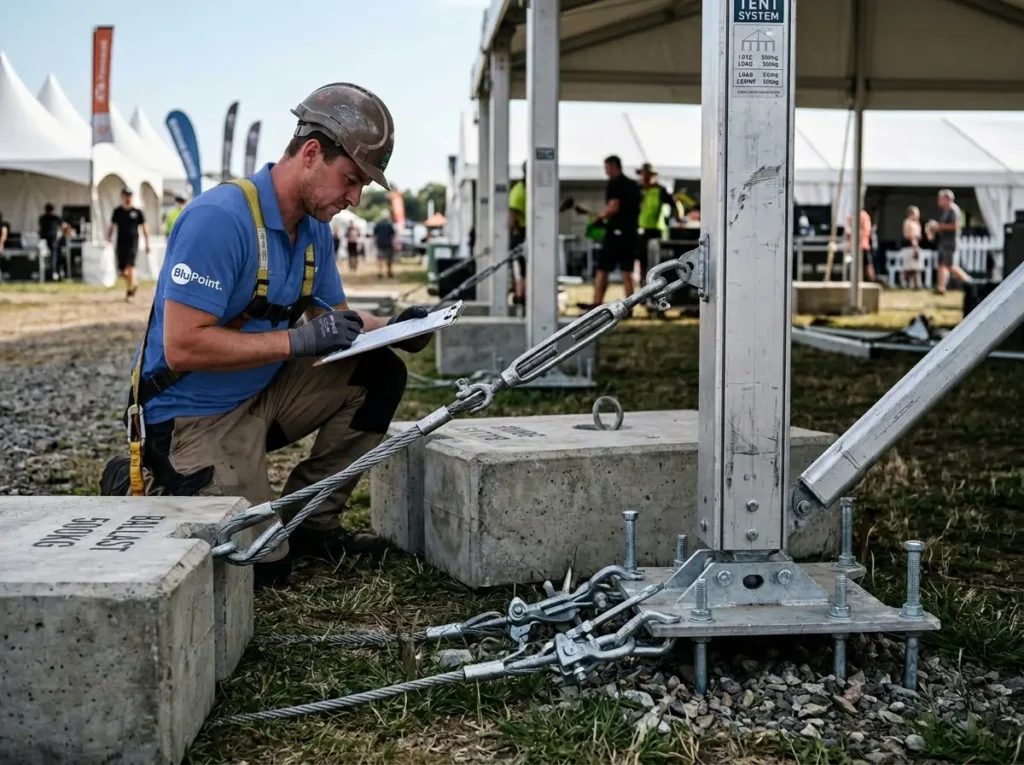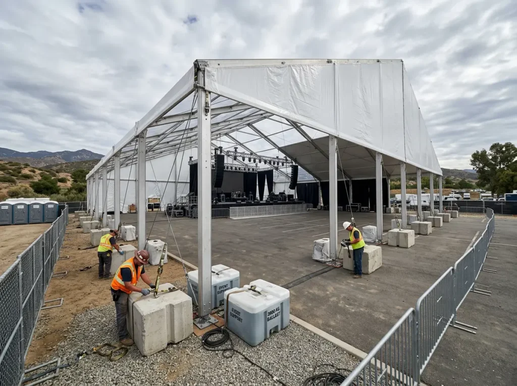Temporary structures must meet strict safety and installation standards. Proper anchoring, spacing, and placement are essential.