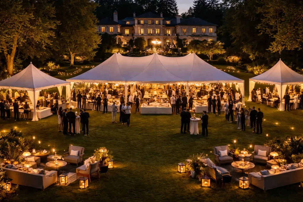 If your event takes place outdoors or uses temporary spaces, tenting should be part of early planning.