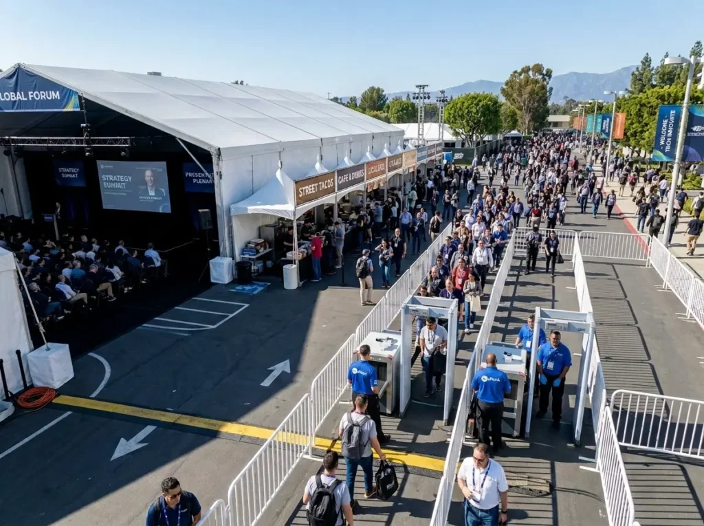 These build-outs allow tents to support catering, staff operations, vendors, activations, VIP lounges, credentialing, and guest services. Proper interior planning helps define spaces clearly and keeps sites organized throughout the event.