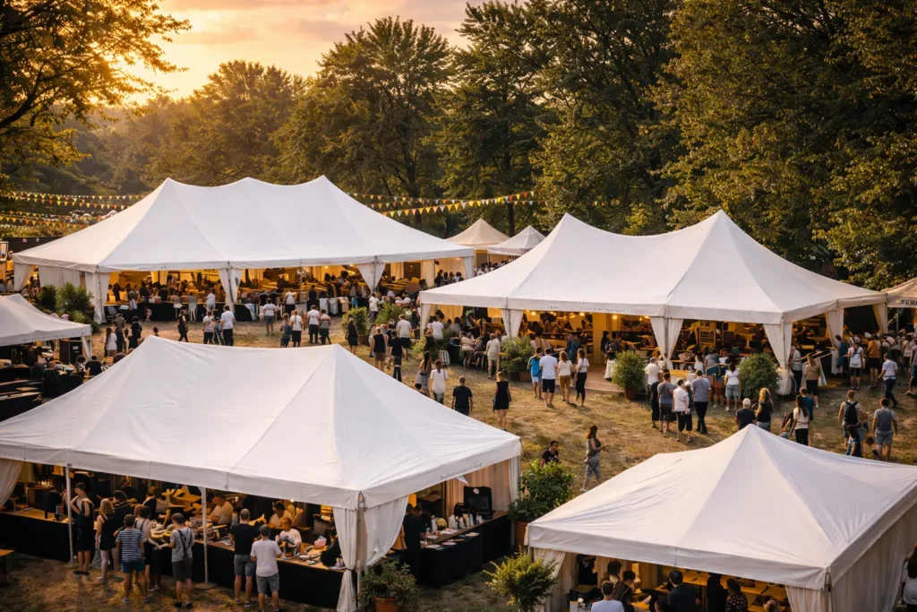 We provide configurations ranging from 10×10 tents to large-format installations capable of covering stages, audience areas, vendor zones, production compounds, and full event footprints.